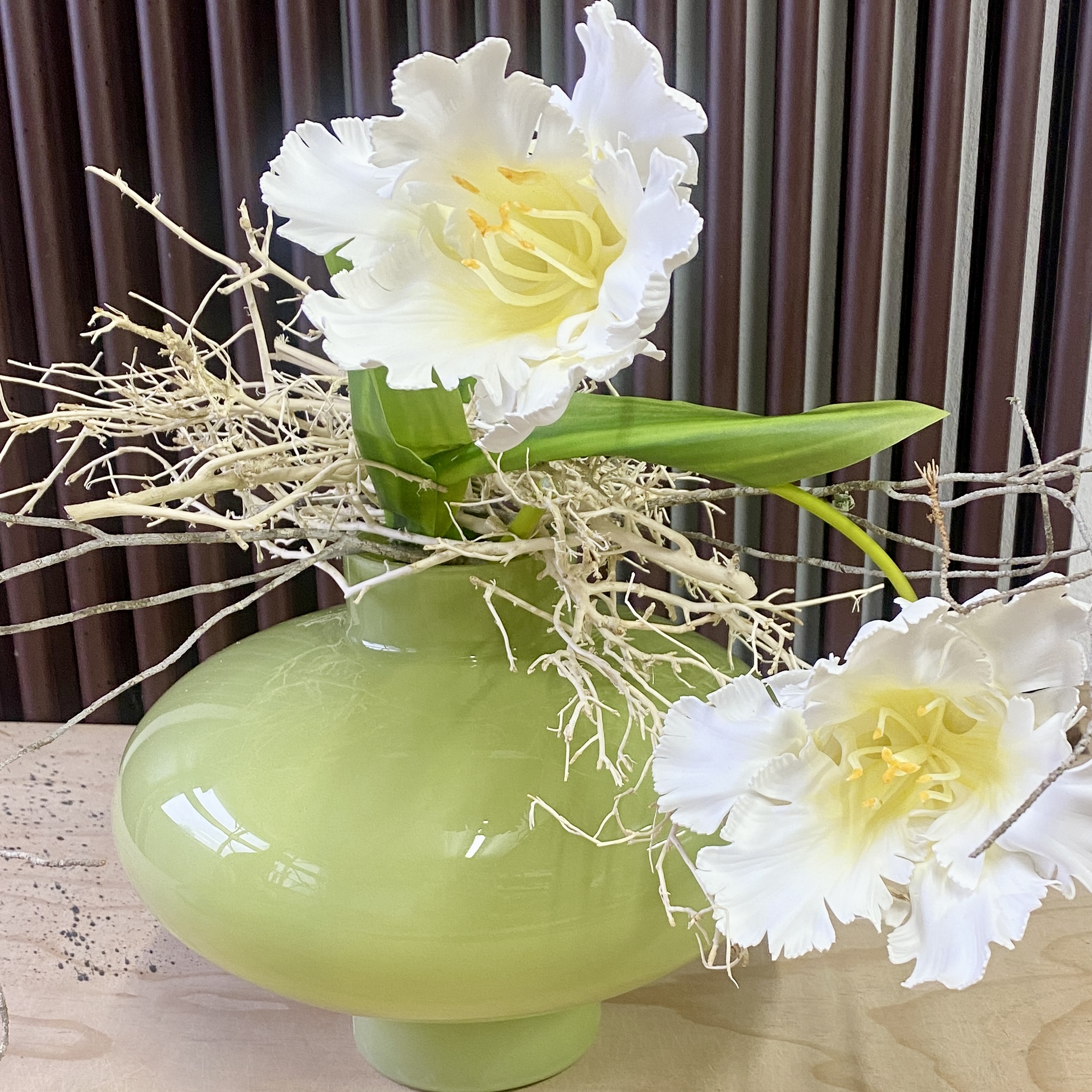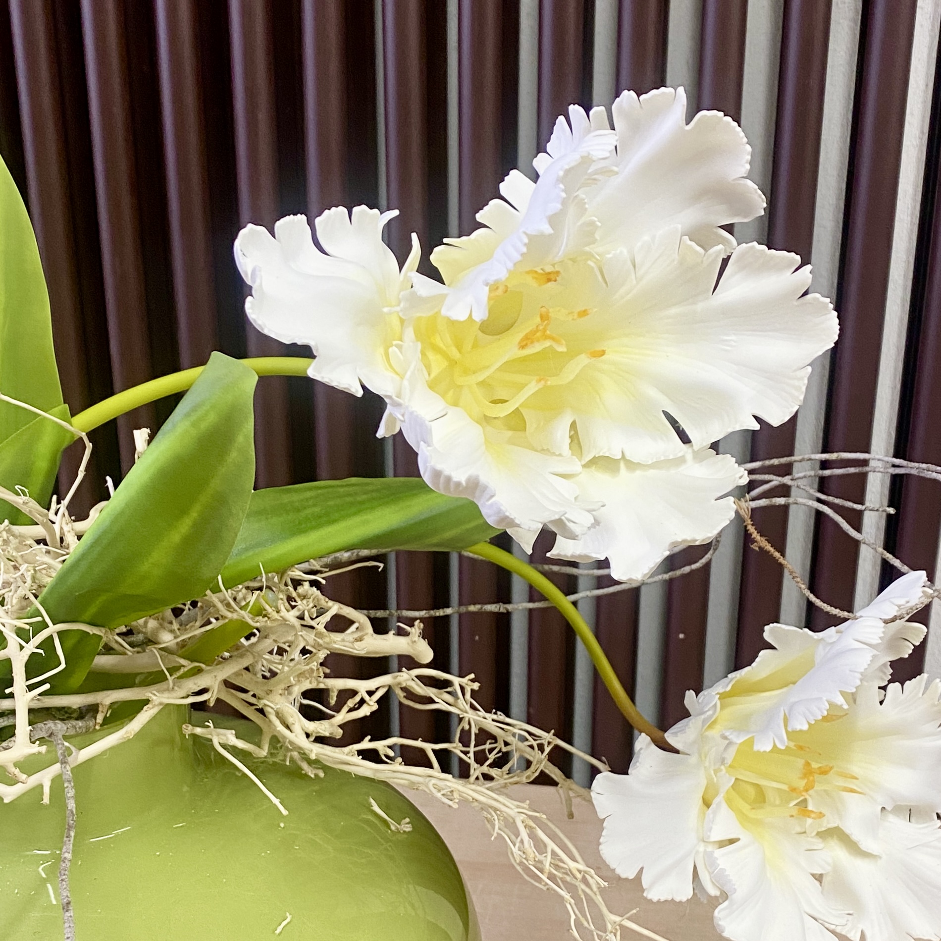 Wunderschöne Langstiel-Tulpe aus Kunststoff mit weißer Blüte. Look wie echt. Eignet sich hervorragend für Frühjahrs-Arrangements.