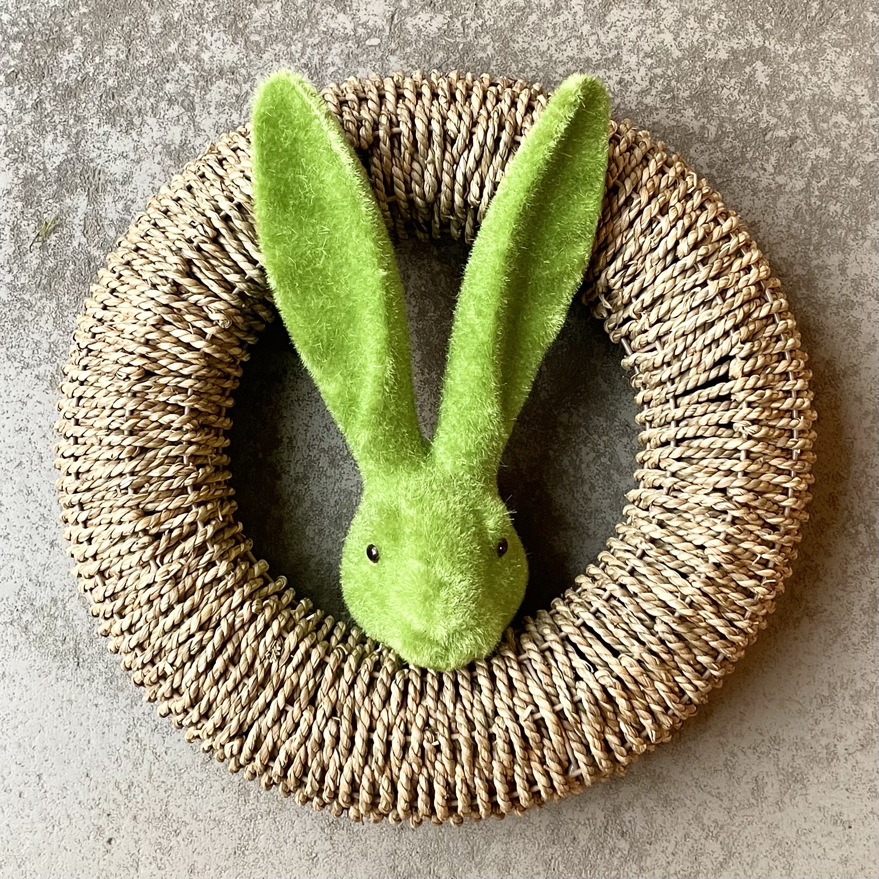Hasenkopf aus Kunststoff mit Velourbeschichtung zum Gestalten. Die Größe eignet sich perfekt für Kränze mit einem Durchmesser von 35cm.
