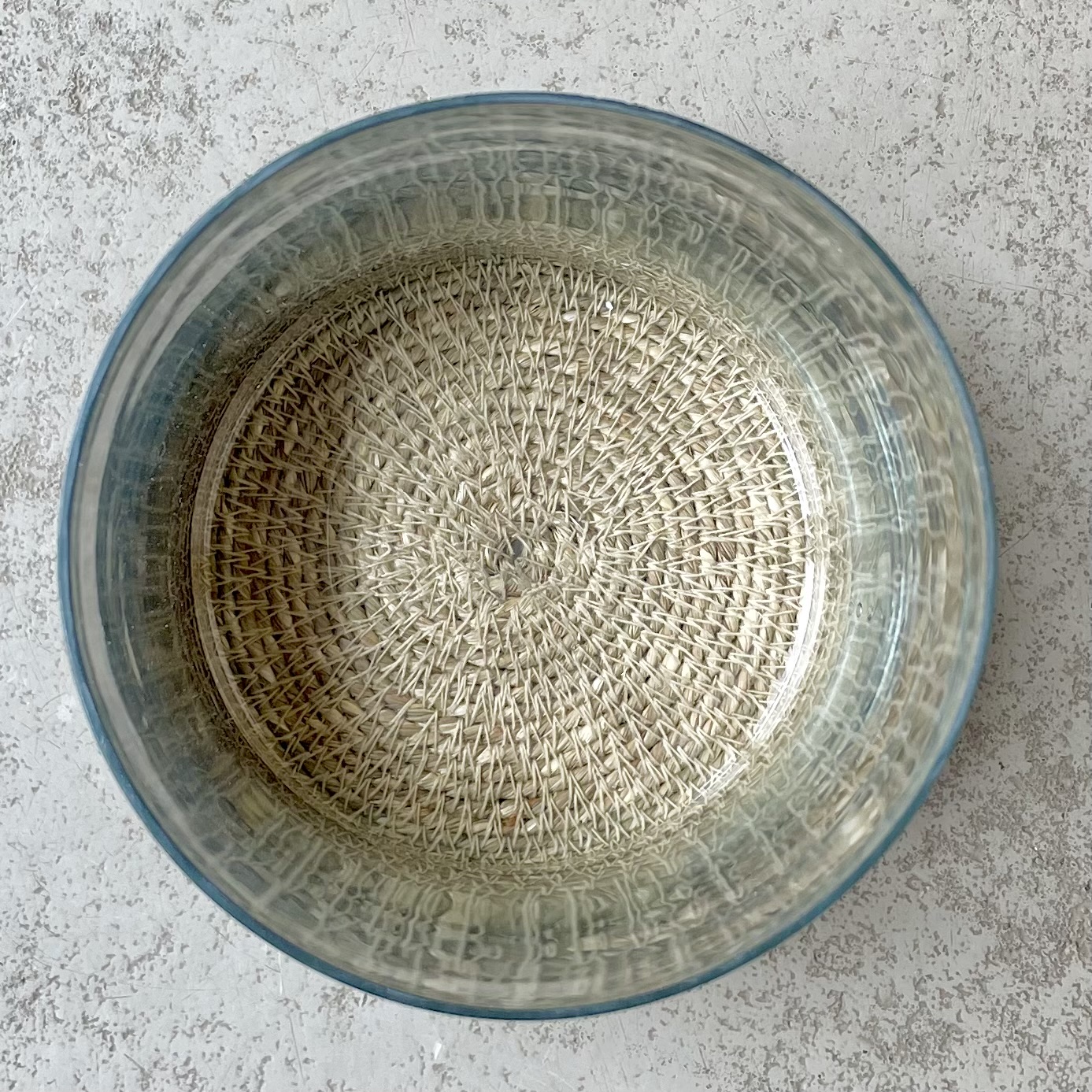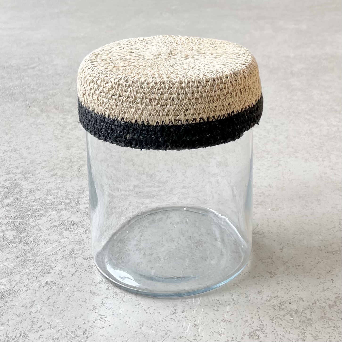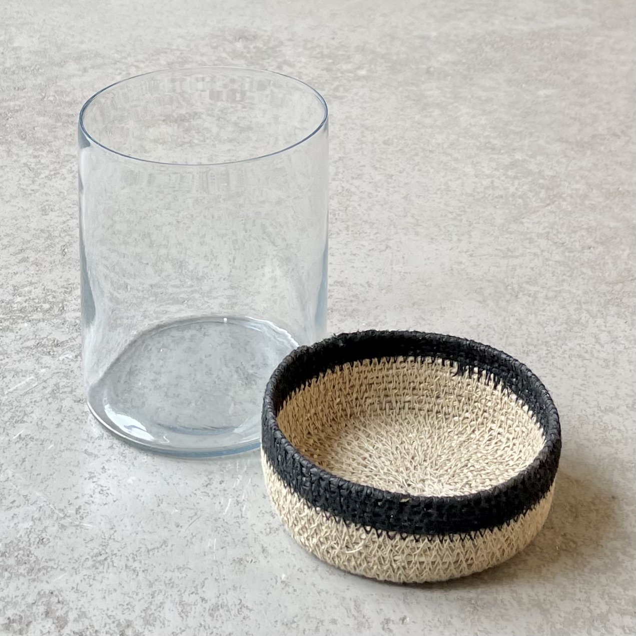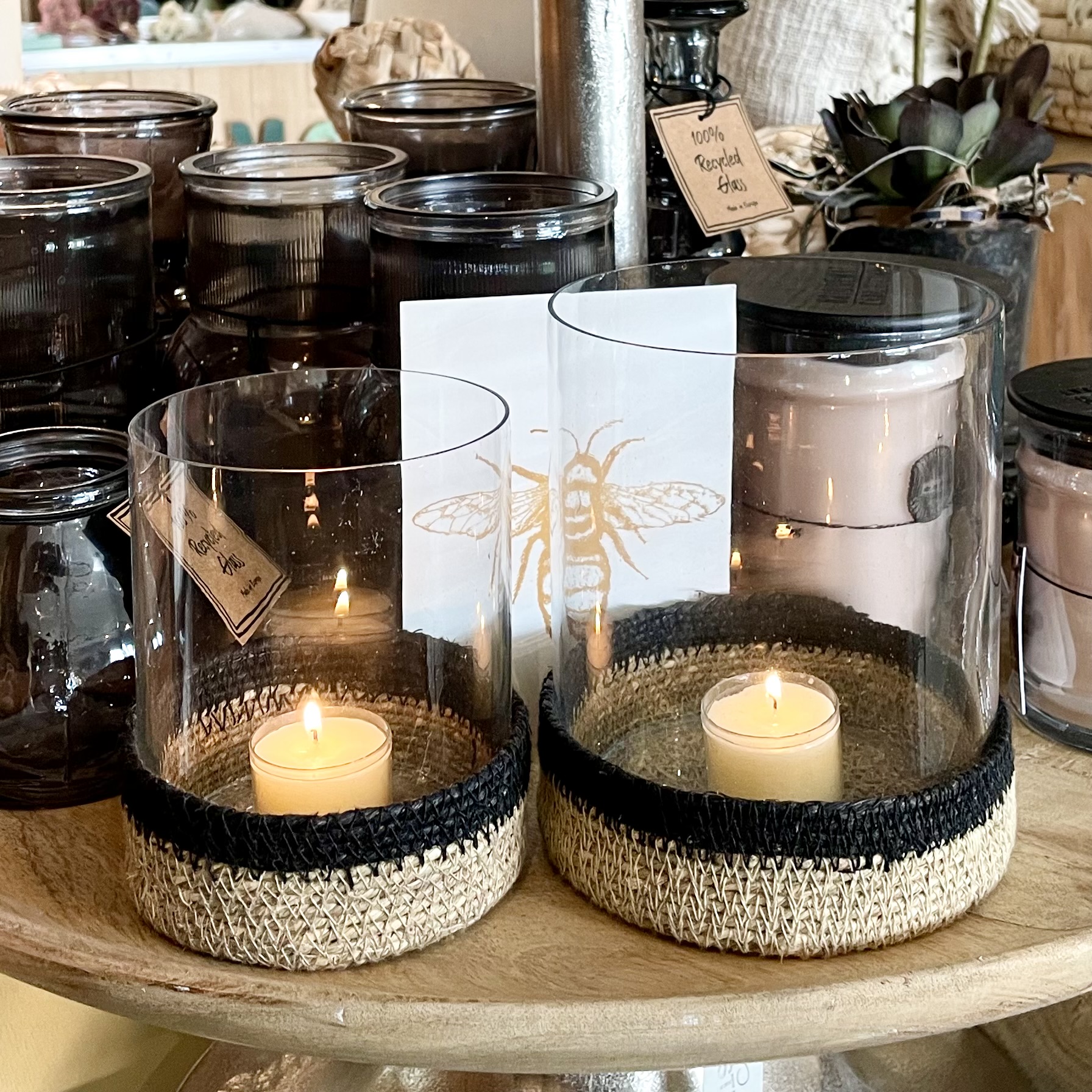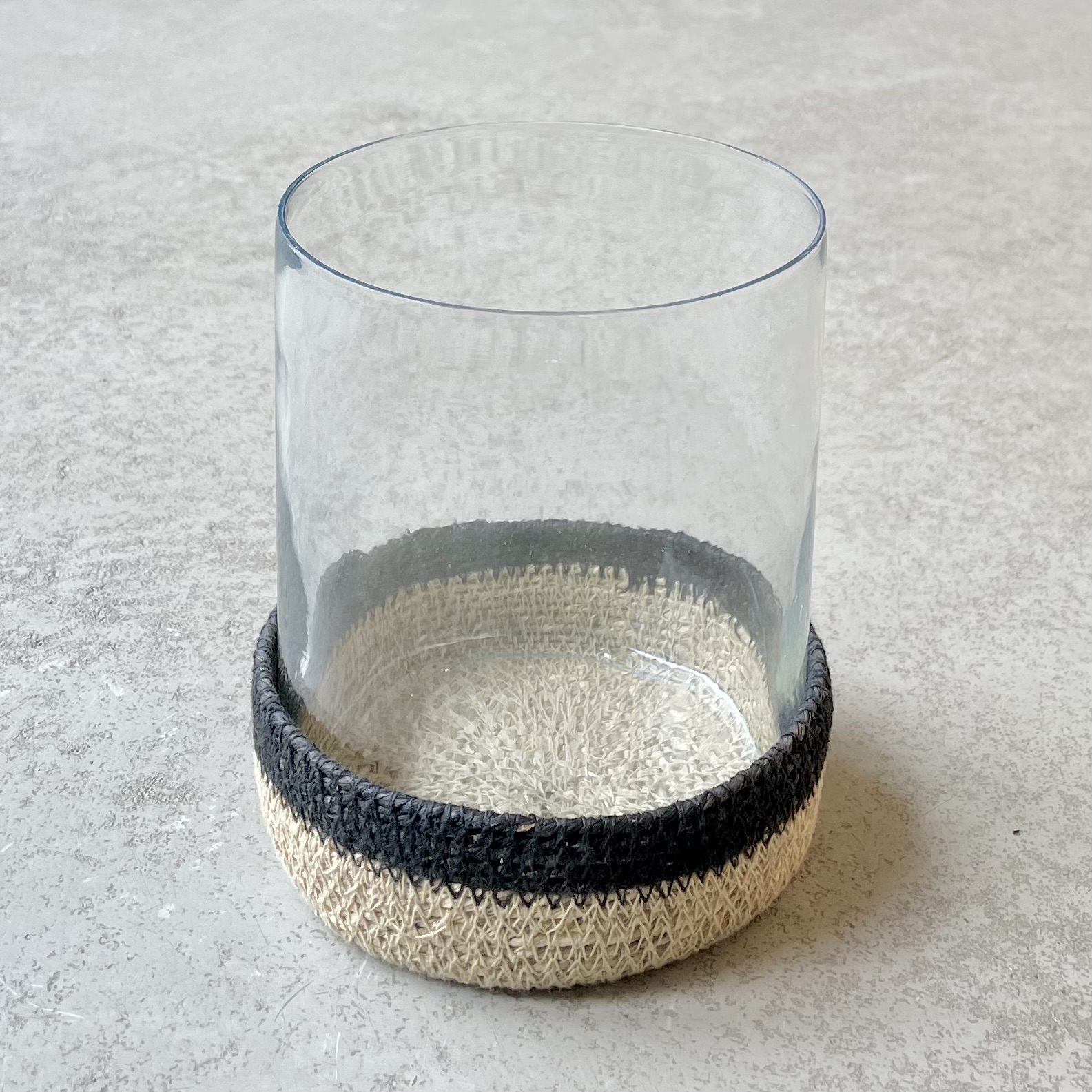 Windlicht für laue Sommernächte, passt zu allen Dekorationen und wirkt leicht. Juteschale mit Glaseinsatz