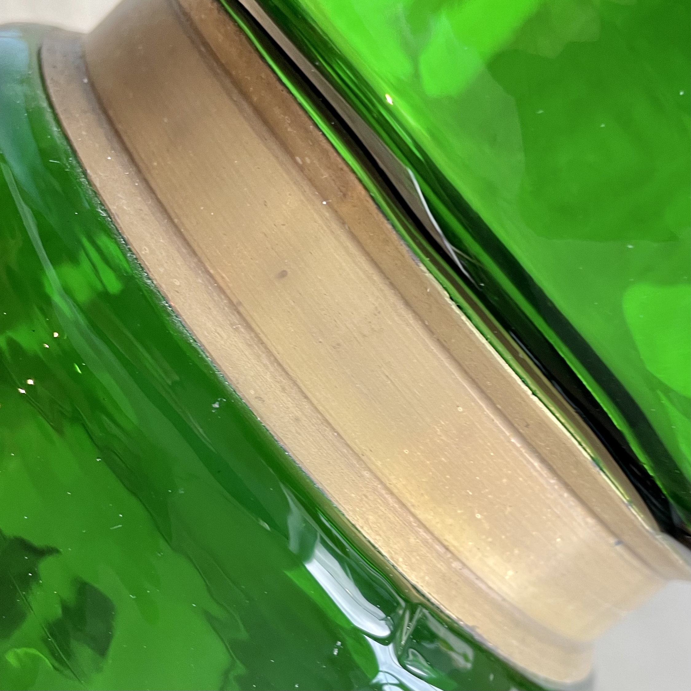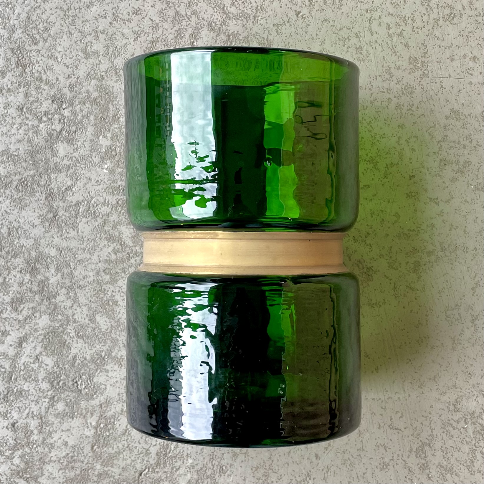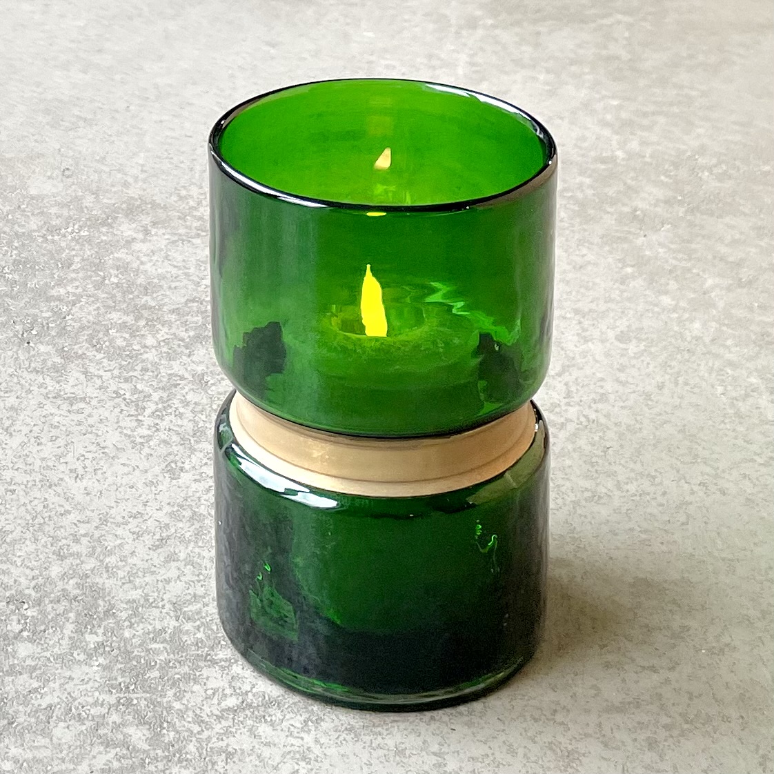 Mundgeblasenes Windlichtglas in Grün für Stumpenkerzen (nicht enthalten). Schwere Qualität, kann auch als Vase genutzt werden.