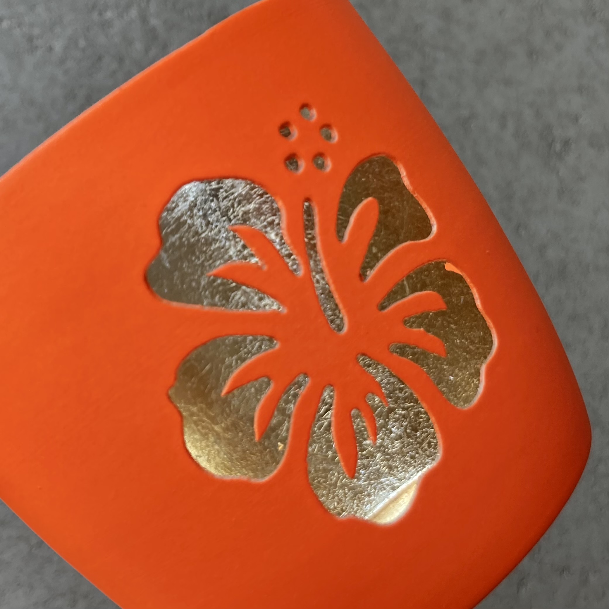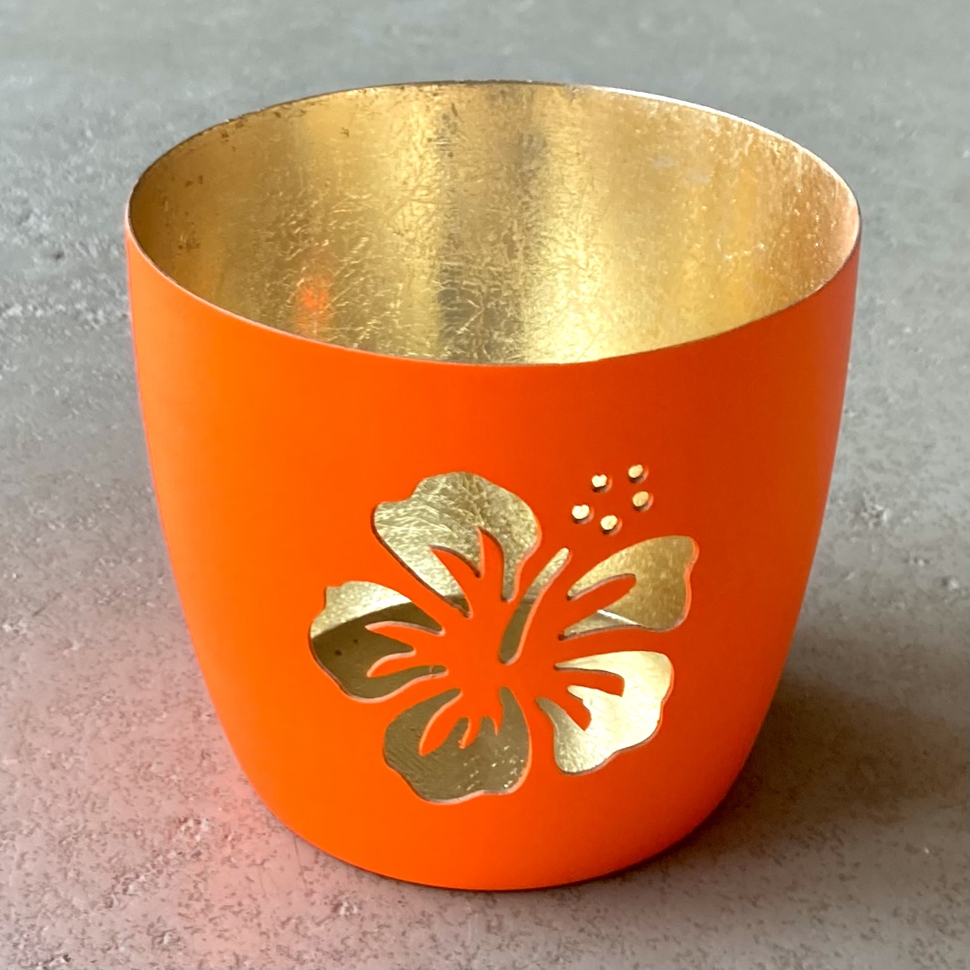 Windlicht "Hibiskus" neonorange/gold