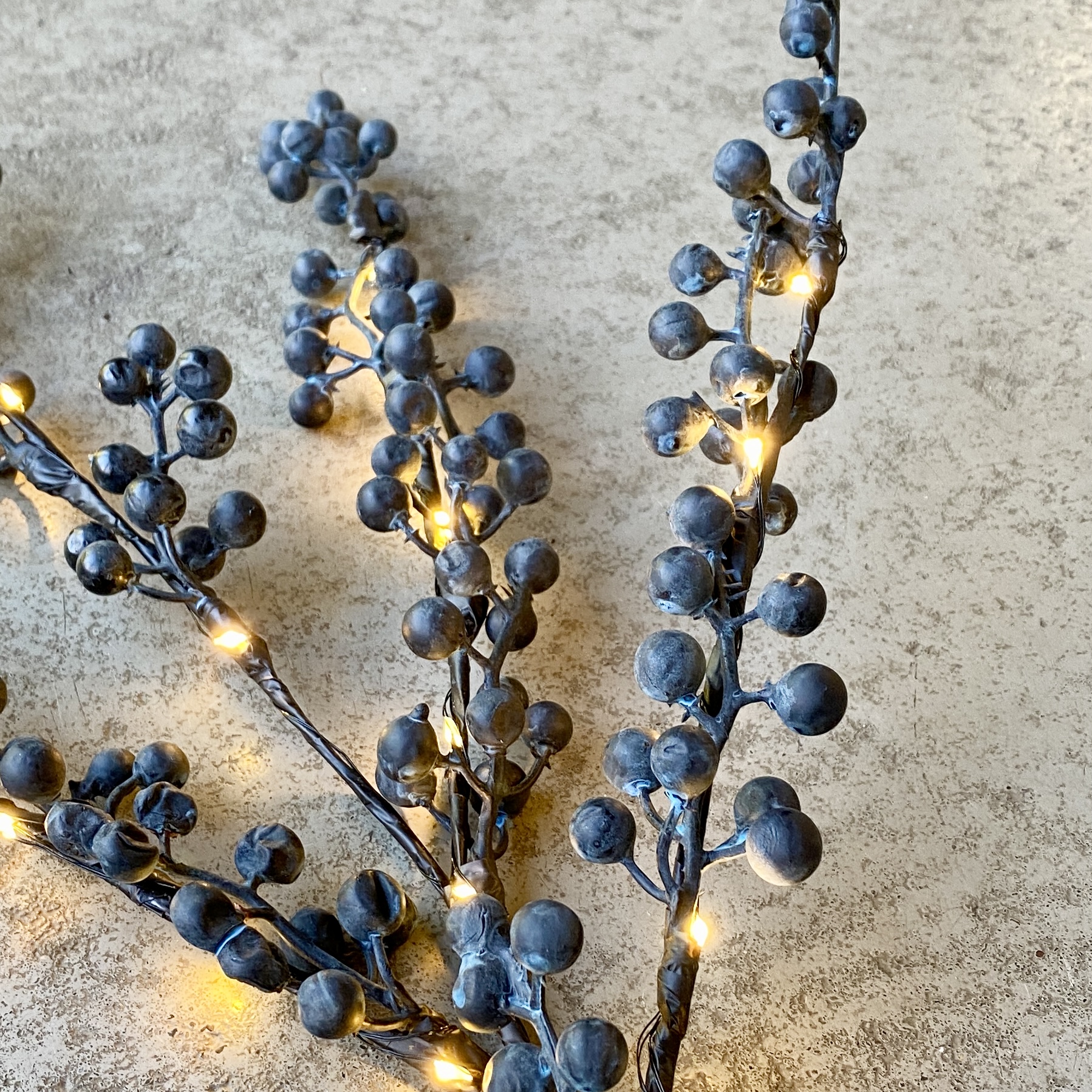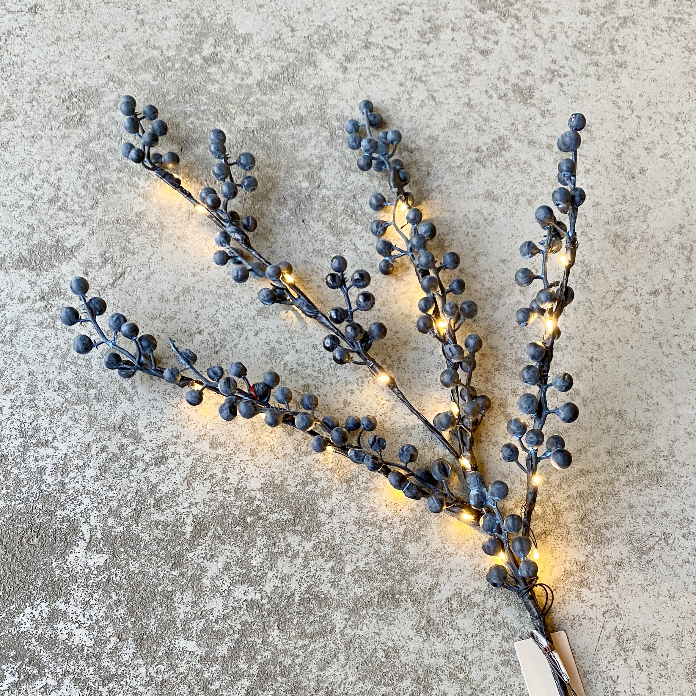 Zweig aus Kunststoff für Innenbereich, Schlehe in Blau, geeignet für Weihnachtsdekoration.
